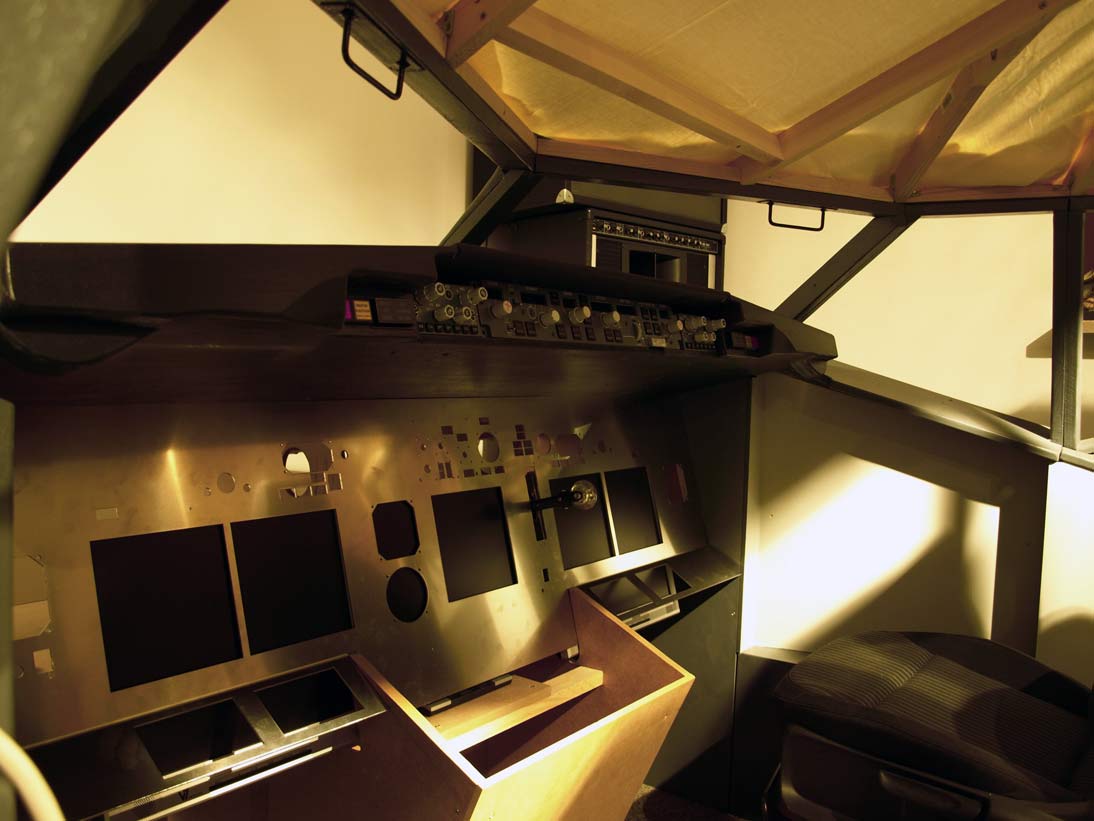 Rechts sieht man auch noch den Durchbruch für die Kabel vom MCP und von den EFIS Einheiten.